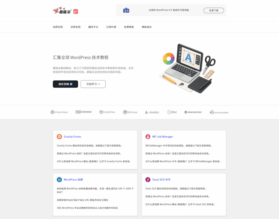 现在的薇晓朵教程微站(Weixiaoduo.net)100多个站点完全由区块编辑器改造完成,并且我们已经接入了 AI 进行协助日常管理。